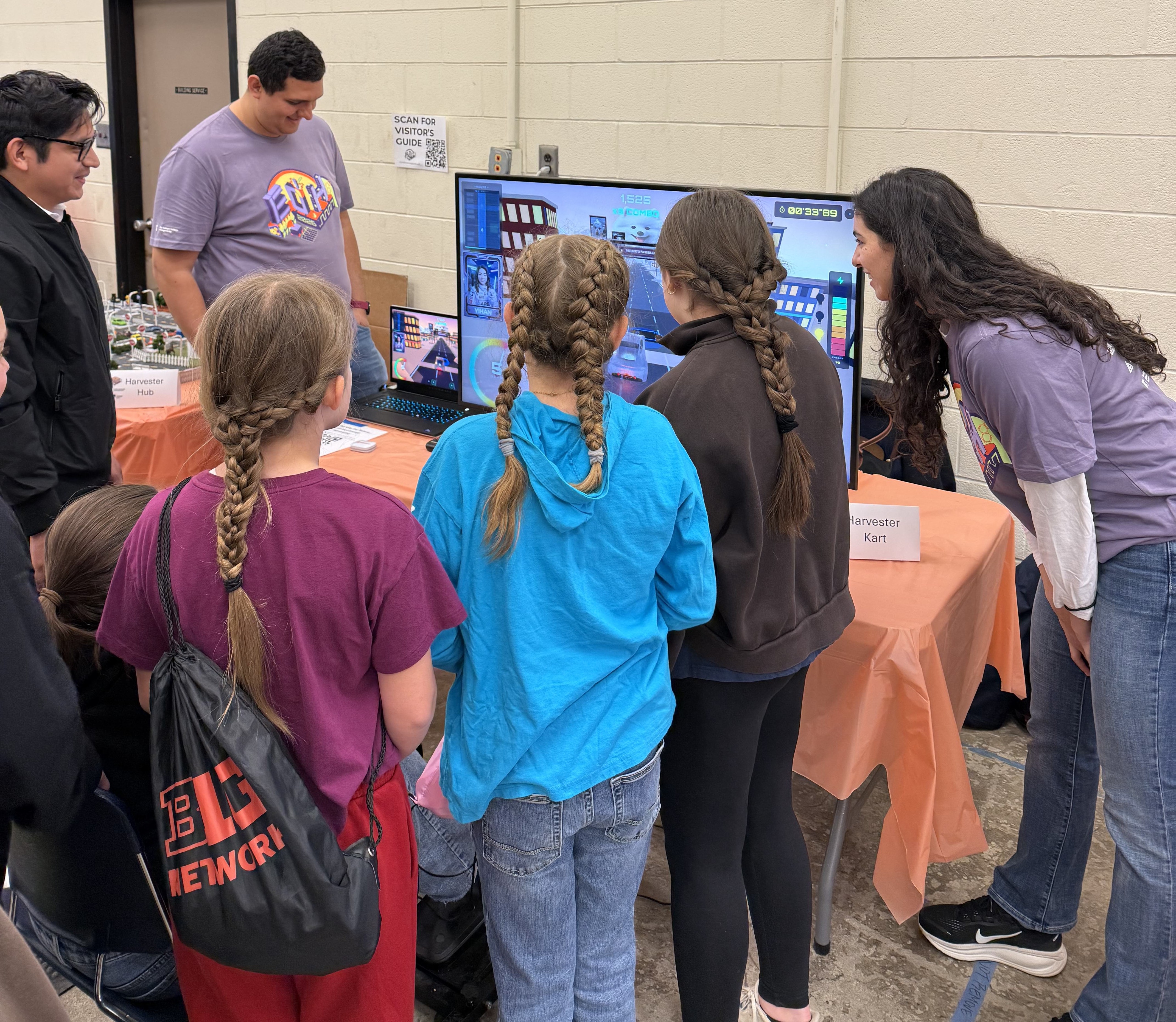 At Harvest Kart, visitors drove a virtual vehicle over energy-harvesting plates, collecting energy while learning how roadway systems can capture power from moving vehicles. The Harvester Hub featured a small-scale prototype that generated energy when visitors jumped on it. That energy then powered the Future City, a model city that lights up in response to the energy generated.