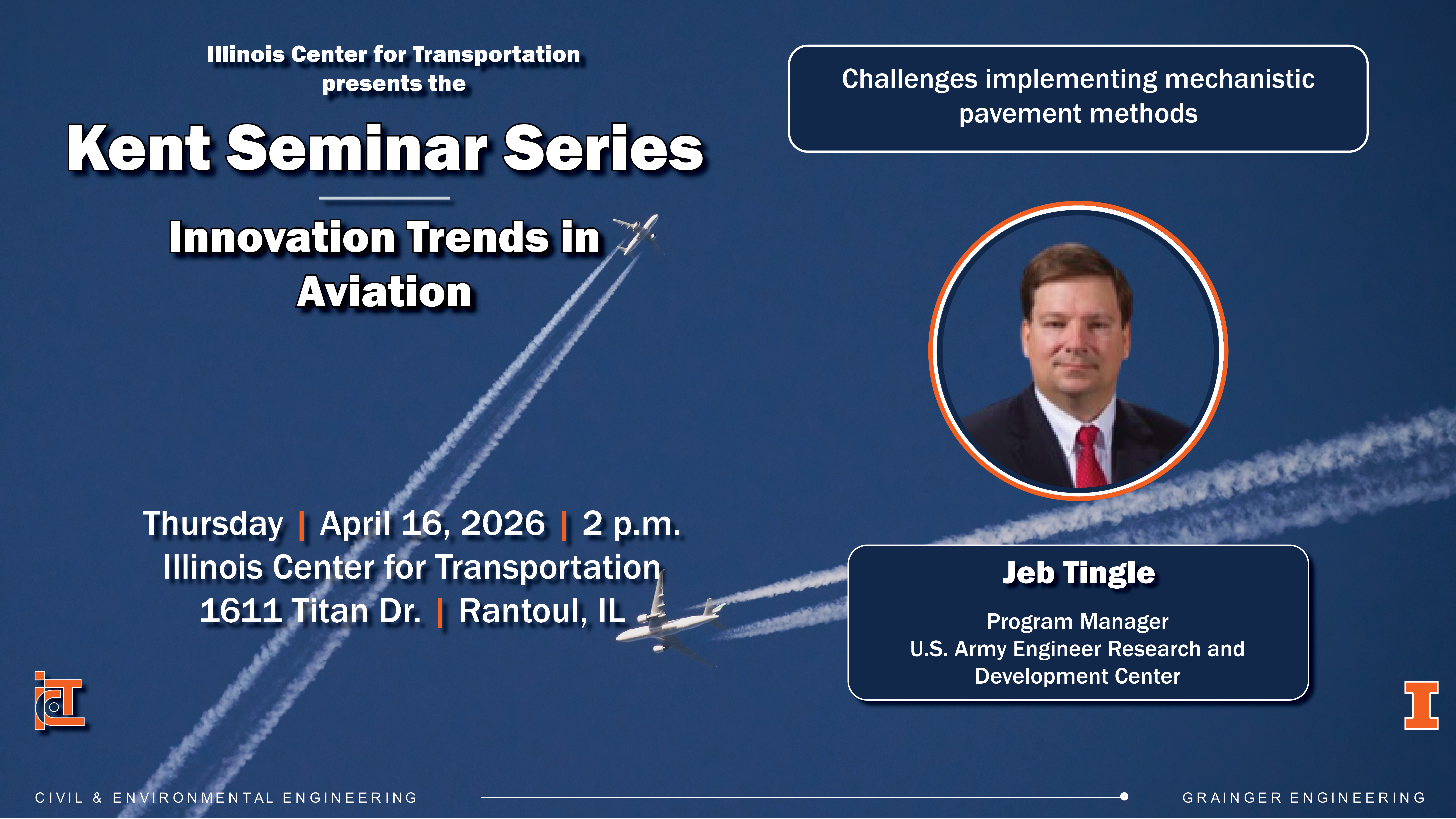 Join Jeb Tingle of the U.S. Army Engineer Research and Development Center as he presents via Zoom at the Spring 2026 Kent Seminar Series Thursday, April 16 from 2-3 p.m. (CT).