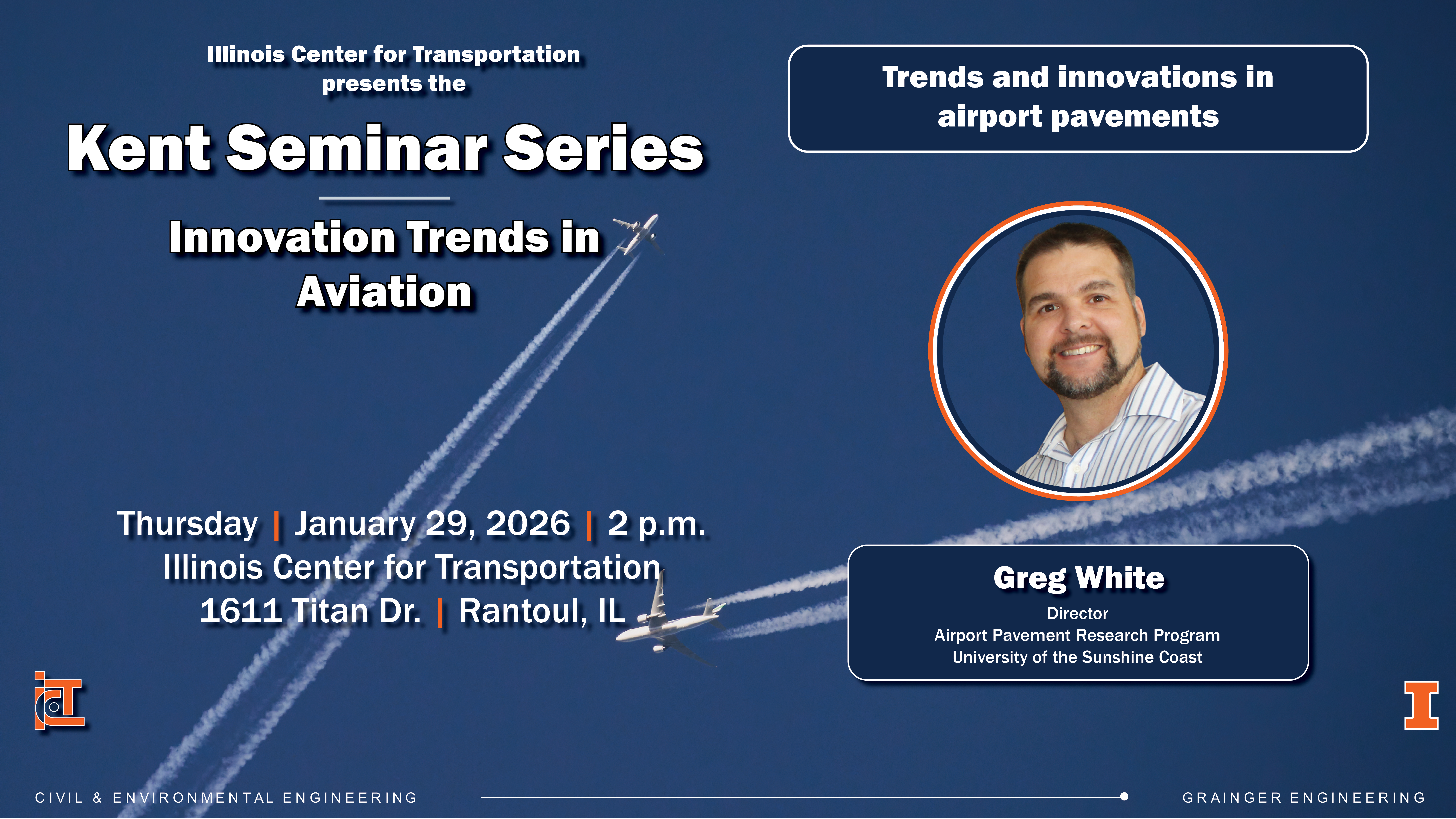 The Spring 2026 semester is set to feature 14 presentations, each addressing a topic related to innovation trends in aviation. See the full lineup of speakers for Spring 2026 semester.
